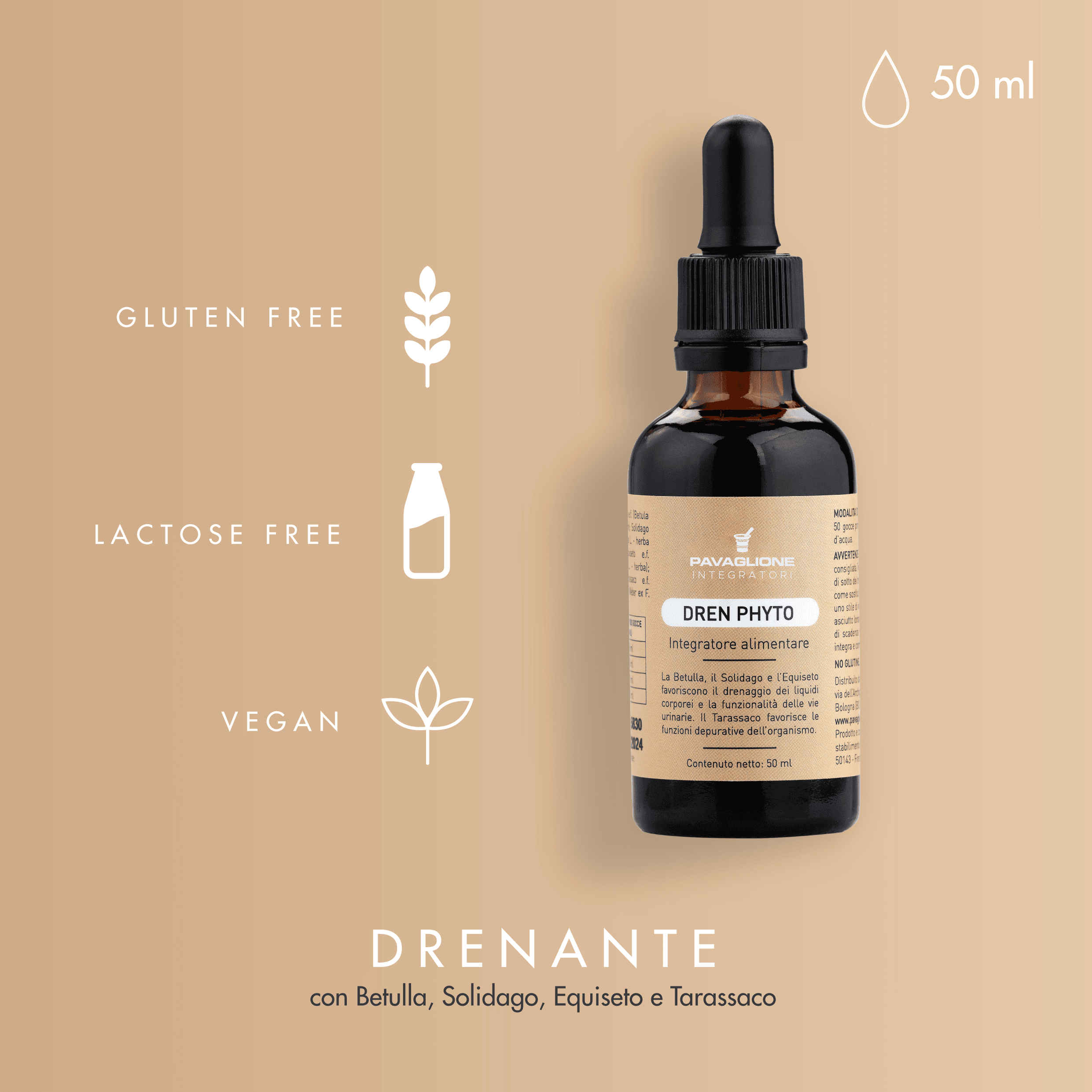 Si consiglia di assumere Dren Phyto per favorire il drenaggio dei liquidi corporei e come coadiuvante nei trattamenti per aiutare a contrastare gli inestetismi della cellulite.
