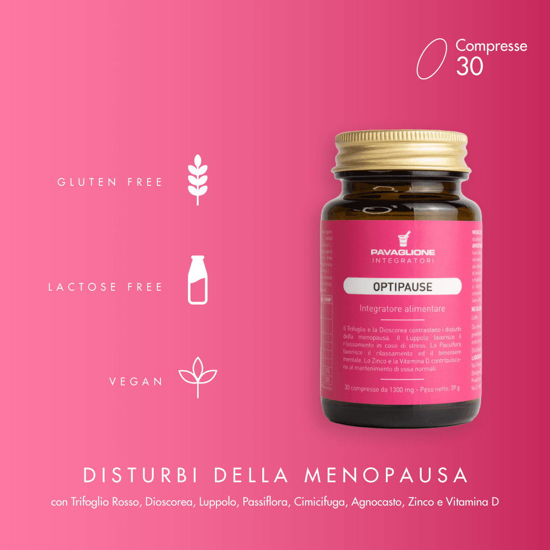 Optipause è un integratore alimentare naturale formulato per sostenere le donne durante la fase della menopausa. Grazie, infatti, alla straordinaria sinergia degli ingredienti agisce a 360° su tutti i sintomi della menopausa.