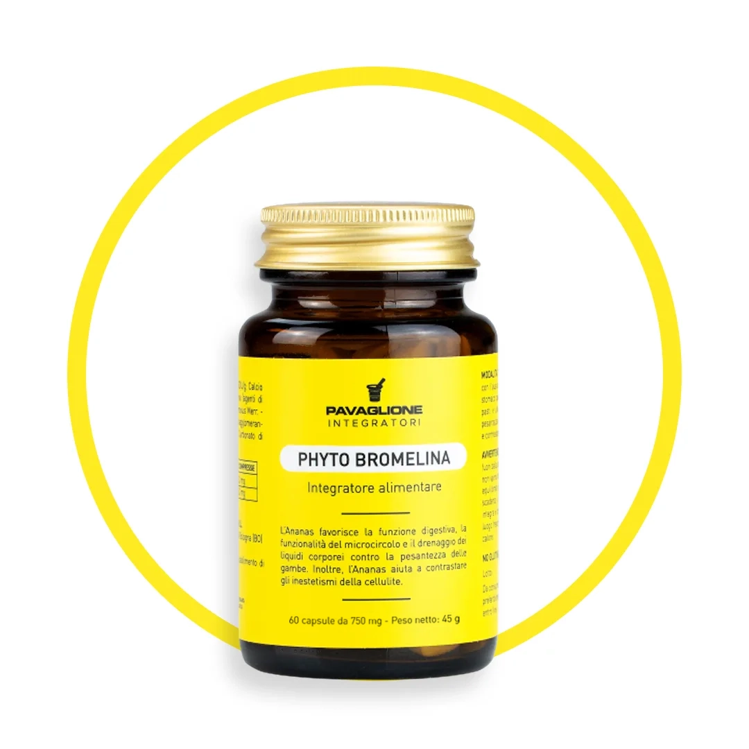 Phyto Bromelina è un integratore alimentare a base di Bromelina ed estratto di Ananas. La sinergia degli estratti naturali combina le proprietà dell’Ananas e della Bromelina ad alto dosaggio per agire in modo efficace e mirato sugli inestetismi della cellulite e favorire il benessere del microcircolo, il drenaggio dei liquidi e la digestione.