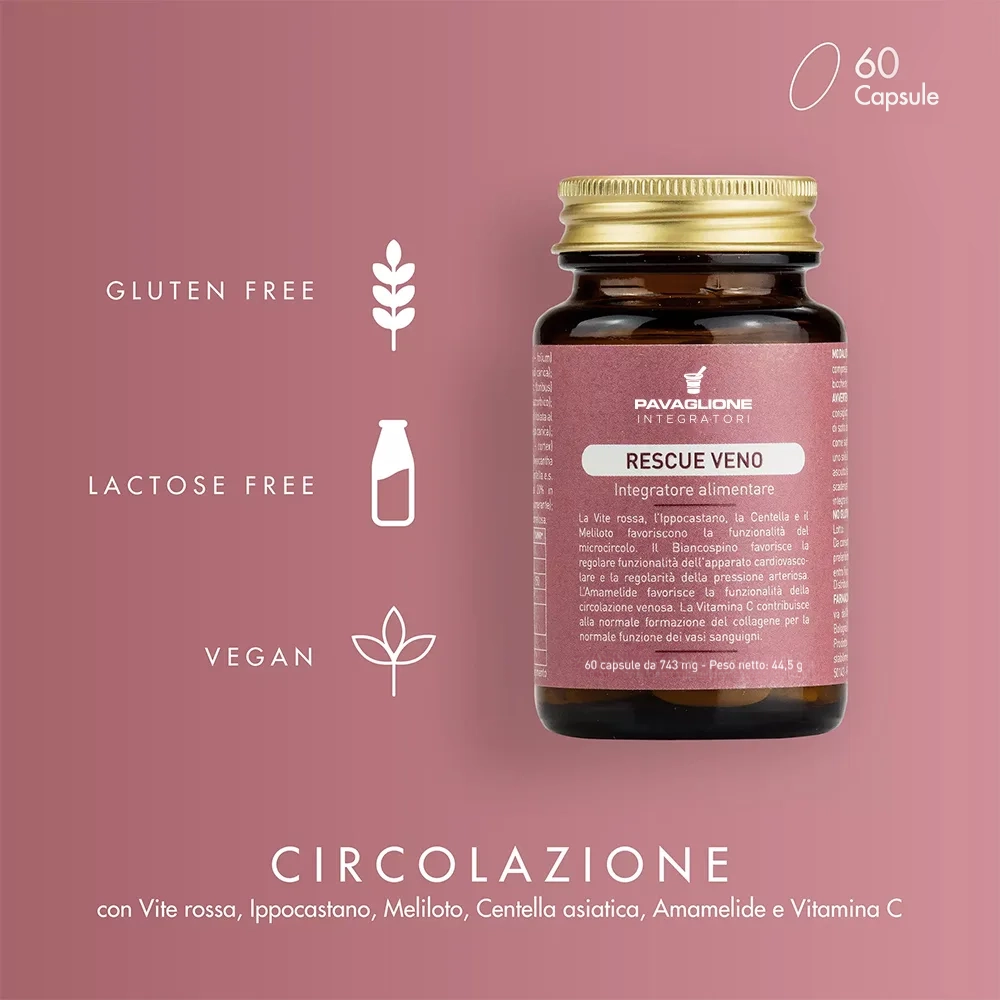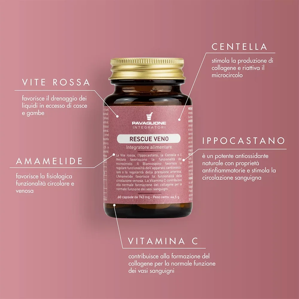 Rescue Veno è un integratore alimentare a base di estratti naturali e vitamine che favoriscono il benessere della circolazione venosa e del microcircolo, donano alle tue gambe la leggerezza quotidiana di cui hanno bisogno.